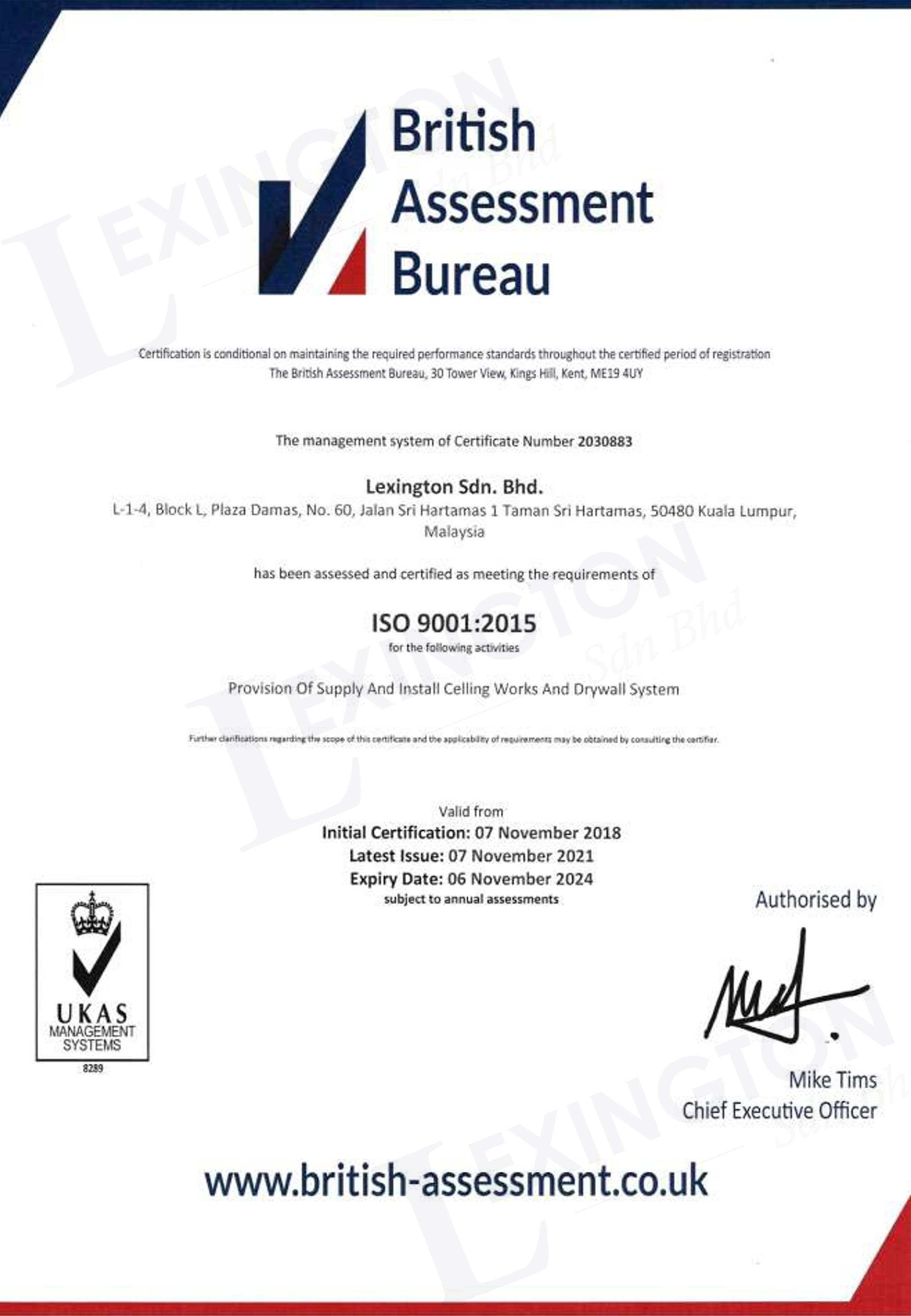 LEXINGTON SDN BHD is a leading specialist in architectural work focusing on ceiling and drywal works. We specialized in delivering the best quality works to cater to all client needs. We emphasize in becoming problem solver for architectural works either by implementing standard system or creating new system to cater to client needs. We emphasizes in providing quality works and solutions with stringent cost control in material and labour resource in order to maximize profit for its clients.